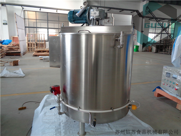 在巧克力生產過程中,巧克力漿料從精磨機或球磨機里輸出,以便精磨機或球磨機連續磨料;保溫缸主要用于精磨后的巧克力漿料的保溫貯存、粗精煉,以滿足巧克力生產的工藝要求,便于巧克力糖果生產線的連續化生產。